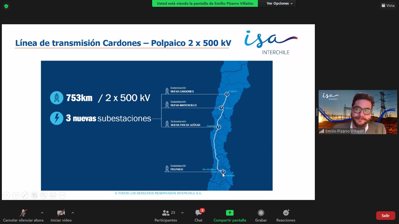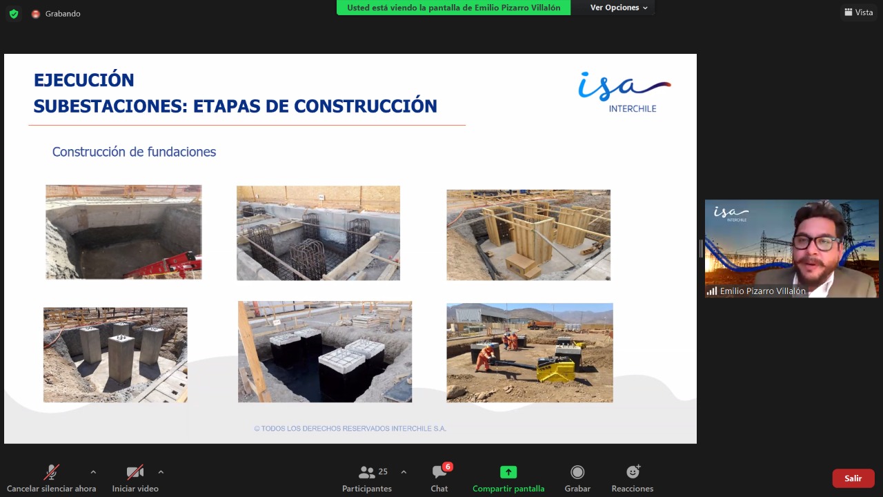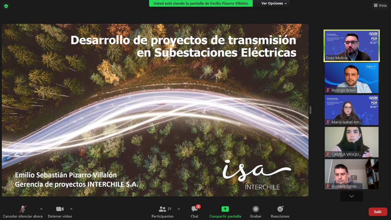 24 de junio de 2021. Buscando generar nuevos espacios de aprendizaje para los jóvenes de enseñanza media técnico profesional de la especialidad de electricidad, Futuro Técnico en alianza con ISA INTERCHILE se unieron para realizar el ciclo de webinars: “Desarrollo de proyectos de transmisión en Subestaciones Eléctricas”, encabezado por el Jefe de Proyectos de ISA Interchile, Emilio Pizarro. Esta actividad permite vincular al sector formativo con el mundo laboral, potenciando los espacios de alternancia formativa para los estudiantes de las regiones de Coquimbo y Valparaíso.